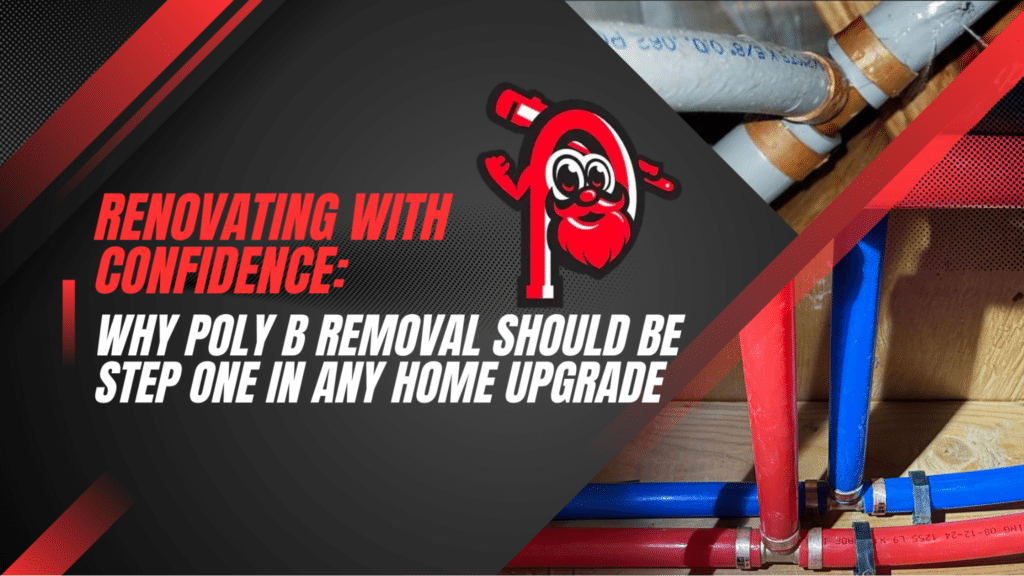 Removing Poly B pipe in Alberta | In Alberta and B.C., home renovations are booming. Whether it’s a new kitchen or a stylish basement retreat, homeowners are investing more than ever in transforming their spaces. But beneath the sleek cabinetry and fresh tile, there’s a critical upgrade often overlooked: Polybutylene (Poly B) piping.